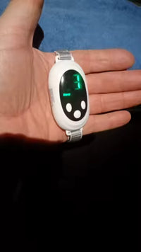 El dispositivo estimula un punto clave de relajación ubicado en el centro de la palma, asociado tradicionalmente con:
